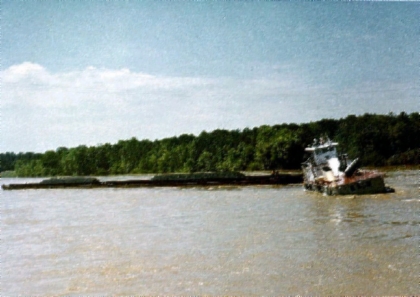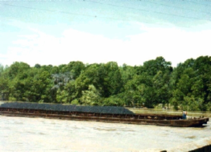 1. A towboat pushing a barge loaded with coal approaches a bridge at high water. The bridge lifts up to let the barges through. |
