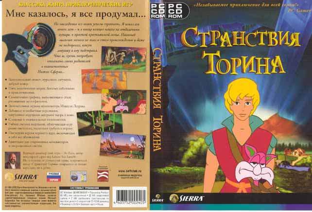 Torin was translated into many languages, including Russian. I want to thank Oleg Torshin for sending me these scans of the box, and a quote from me that basically says, "Yeah, he did Leisure Suit Larry, but this isn't like that!"